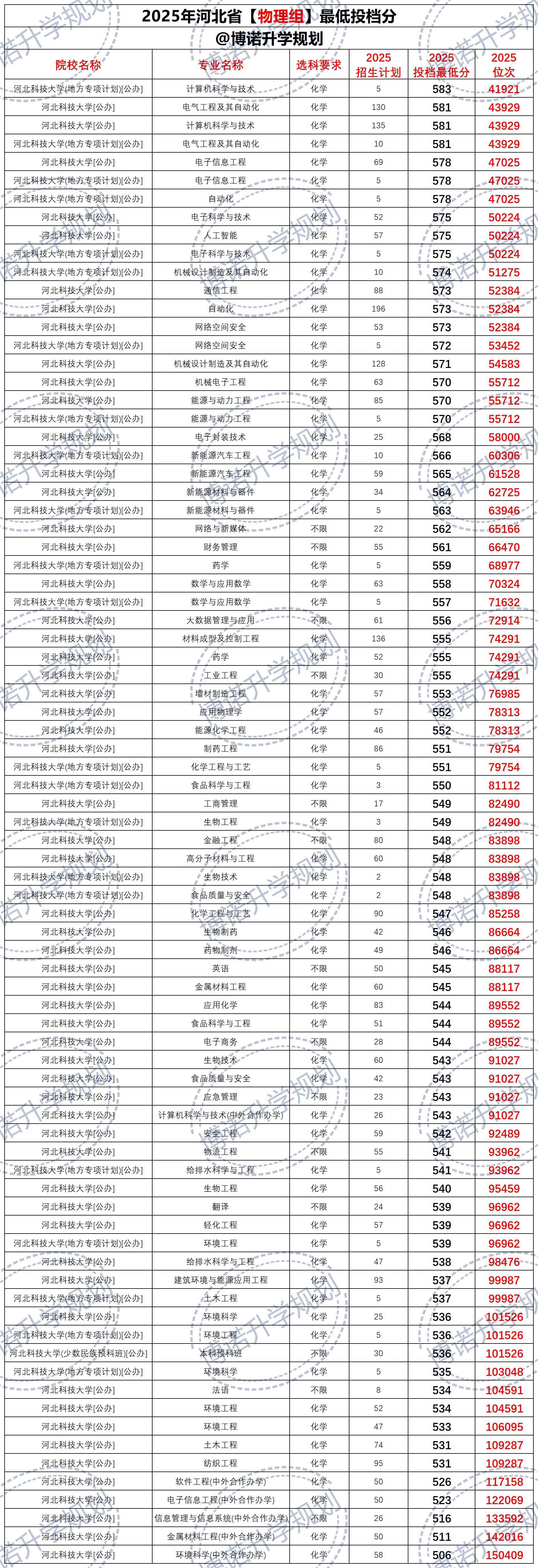 河北科技大学 2025投档分(河北考生)