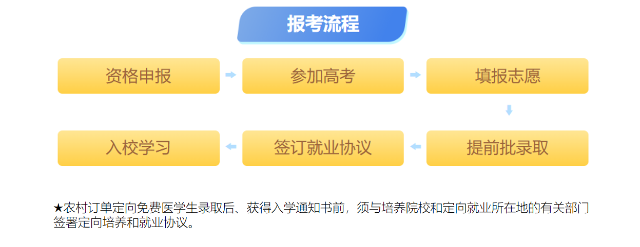 1.在户籍地县(市、区)报名,并符合2026年统一高考报名条件,并在高考报名时勾选【免费医学】选项。