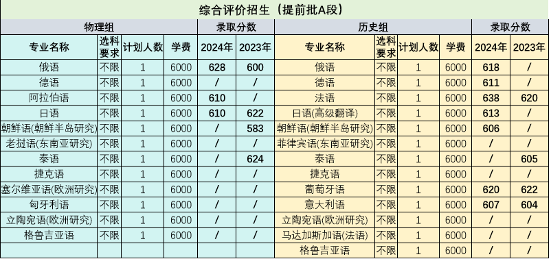 日语、日语(日本研究)、日语(高级翻译)、俄语、德语、法语、法语(国际关系)、西班牙语、西班牙语(葡语)、葡萄牙语、葡萄牙语(法学)、阿拉伯语、匈牙利语、捷克语、瑞典语(欧洲研究)、意大利语、荷兰语(欧洲研究)、塞尔维亚语(欧洲研究)、保加利亚语、立陶宛语(欧洲研究)、朝鲜语(朝鲜半岛研究)、菲律宾语(东南亚研究)、缅甸语(东南亚研究)、老挝语(东南亚研究)、僧伽罗语(南亚研究)、梵语巴利语、泰语、格鲁吉亚语、豪萨语(非洲研究)、马达加斯加语(法语),共30个专业及方向。