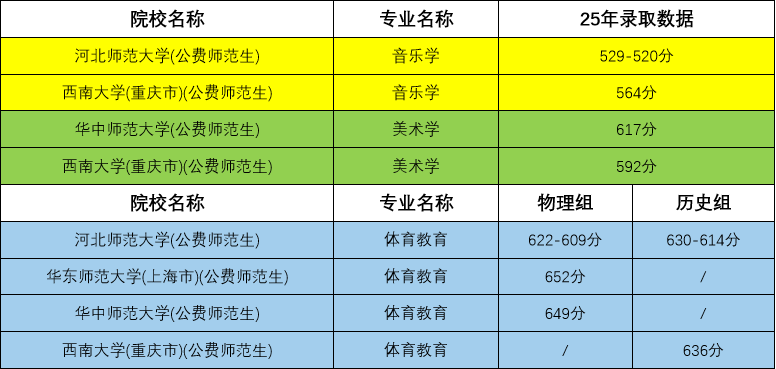 艺术类、体育类中少量的公费师范生招生计划及录取分数
