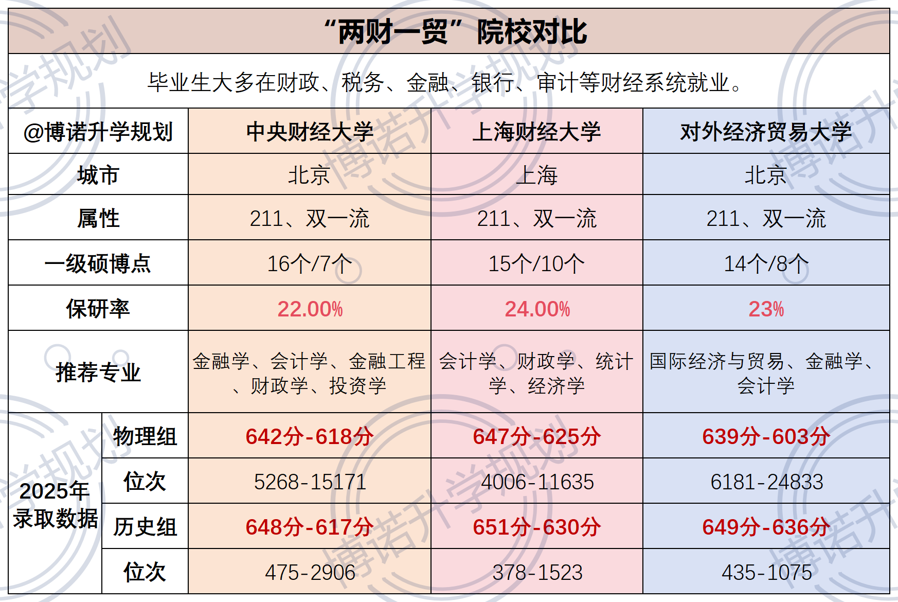 “两财一贸” 是国内财经类院校的第一梯队,指中央财经大学、上海财经大学、对外经济贸易大学,均为教育部直属、双一流 / 211高校,在金融、会计、国贸等领域拥有行业顶尖认可度。