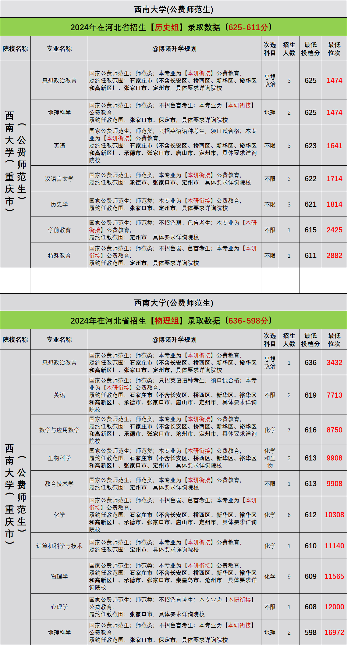 公费师范生▎▎西南大学2024年在河北录取数据!