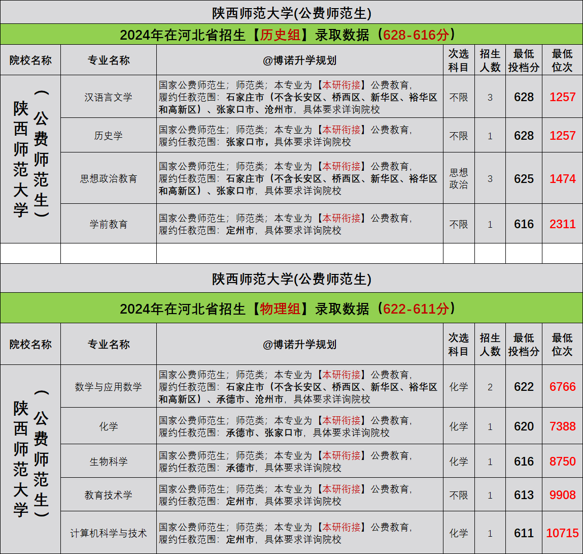 公费师范生 ▎▎陕西师范大学2024年在河北录取数据!