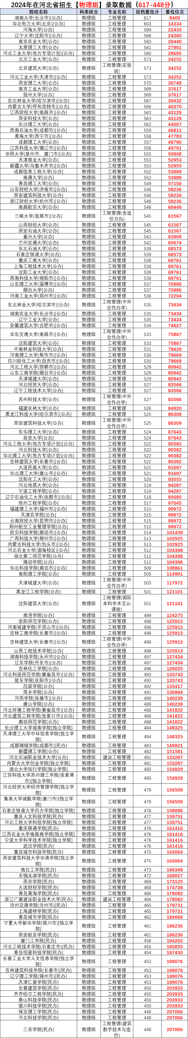 2024工程管理专业在河北招生录取分数: