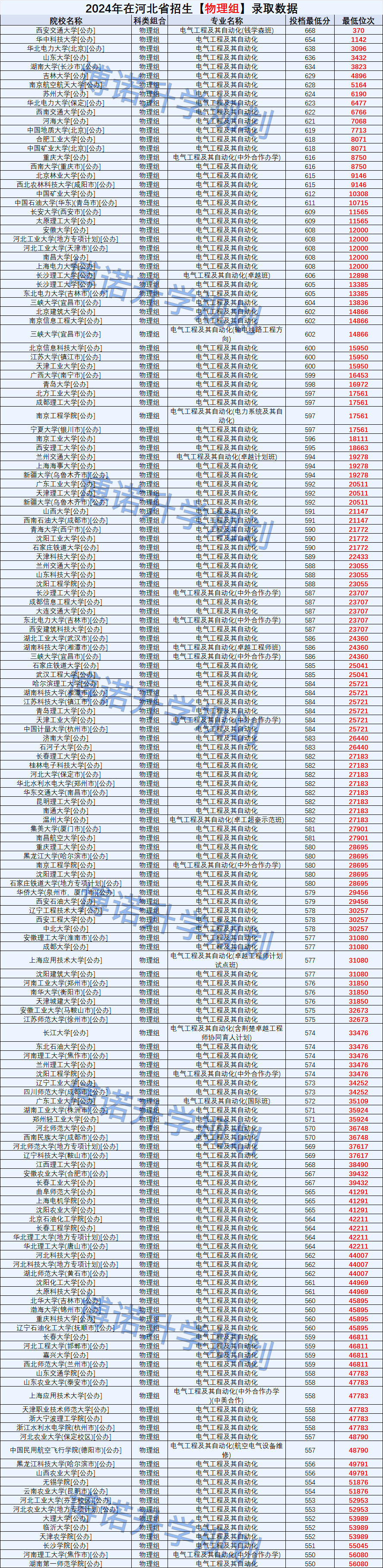 2024电气工程及其自动化在河北录取分数(物理组550分以上院校)